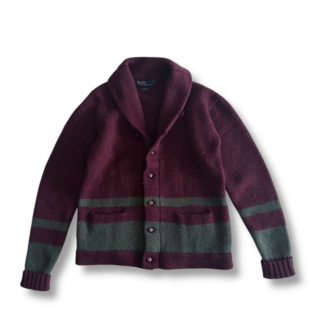 80年代から90年代 そしてPOLO SPORTなんかでも 存在するフリースの スウィングトップタイプ こいつは90年代のやつ。 POLOのポロシャツ、ボタンダウンに つづくアイコンである バイスウィングのOLD型ポケットタイプ フリースは基本的に80sの古い モデルをそのままフリース素材に 変えたって感じのものが多いすね。 丈感がとても今っぽい1着 パーカーやニットの上に羽織れば 都市ではある程度のアウター としても機能します。 色んなカラーがありますが 襟の裏の生地も色んな種類があって こいつはネイビーでカーキのコットン生地が 張られていますが 違う素材がついてることも 全然あります。 だから探すのが面白いんすよね、これ。 とてもおすすめ。 COLOR NAVY SIZE L 【実寸】 肩幅58 身幅66 袖丈59 着丈67 *単位は全てcm,計測方法により若干の誤差が出ます。実寸は参考までに。 尚、この商品はusedになりますので現状でのお渡しとなりますのでご了承下さい。 着用モデル176cm