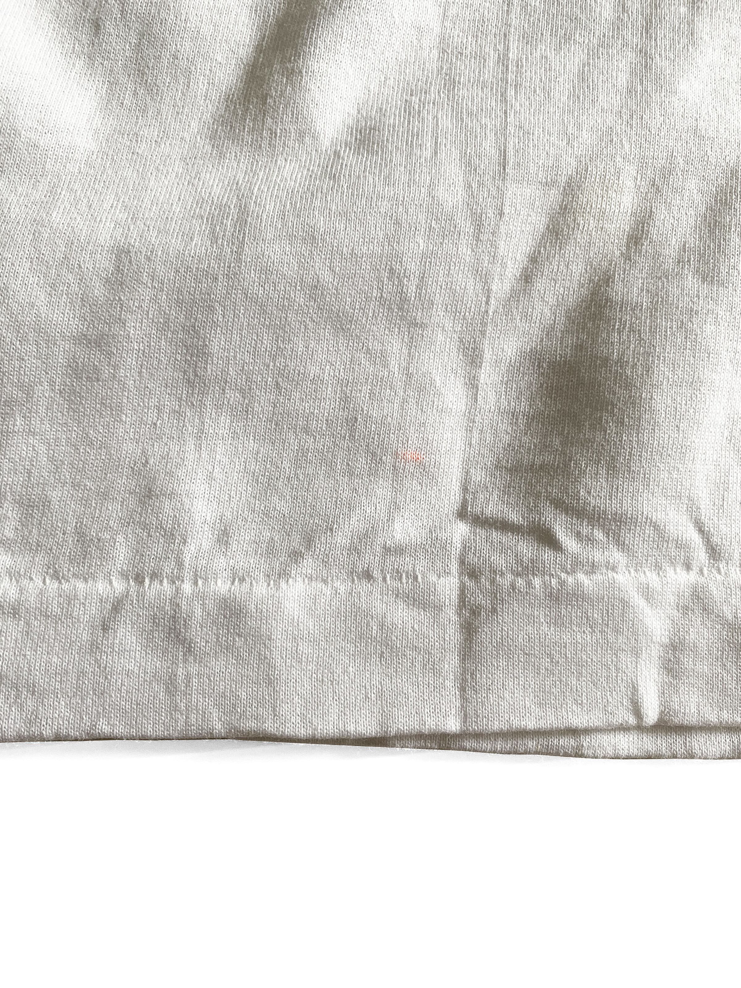 後ろにも一箇所小さな汚れ(画像参照、このアイテムはデッドストックのためあえてそのままですが、最悪漂白剤で落ちる、もしくは確実に薄くなる汚れです。古着慣れしている方であれば、そもそもそこまで気にならないレベルかと思います。)