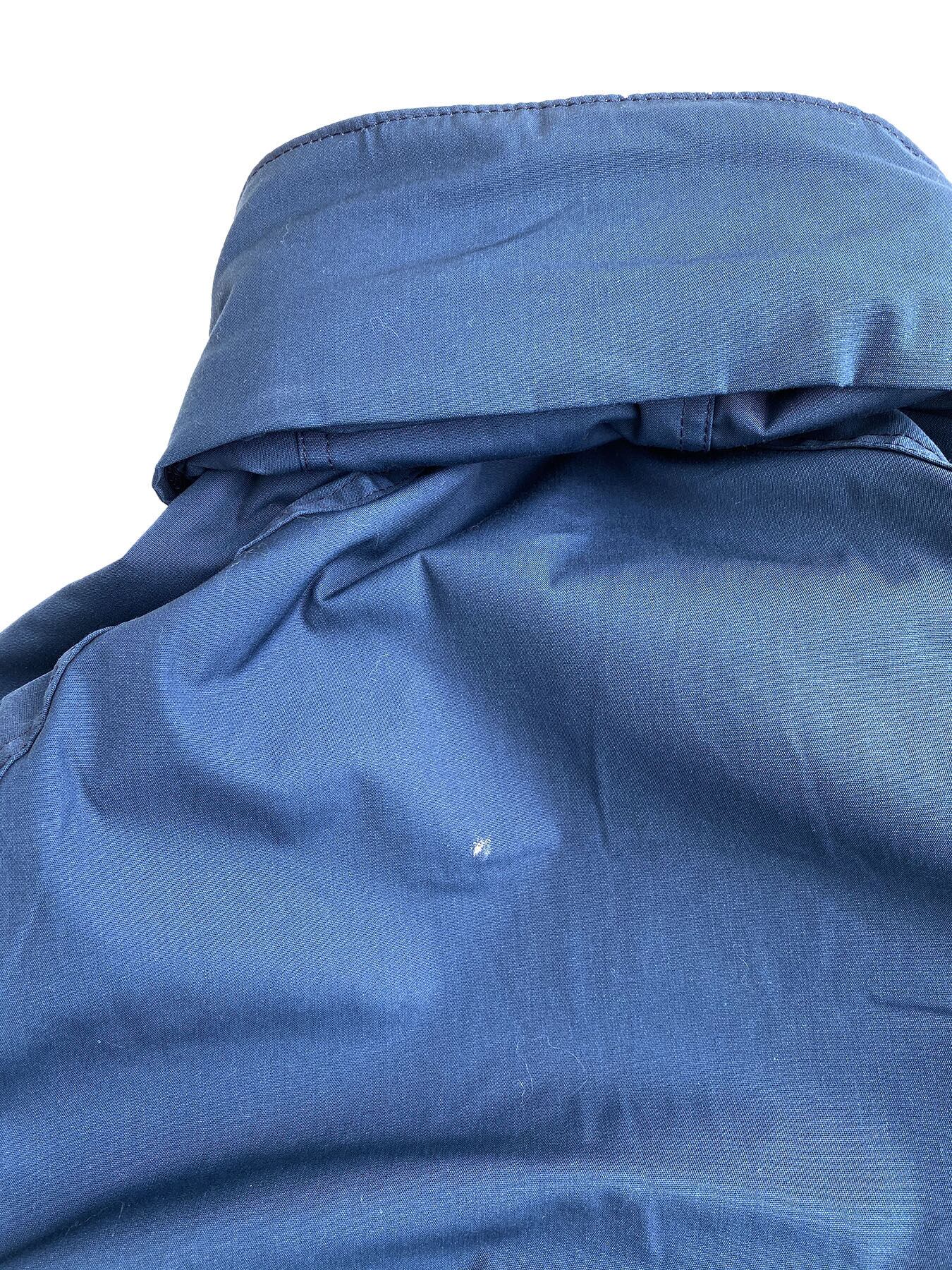 *前方下方のポケット付近・ジッパーレール付近(フロント比翼で隠れる部分)うっすら汚れあり。ほとんど気になりません。背中に少し白い汚れあり(画像参照)