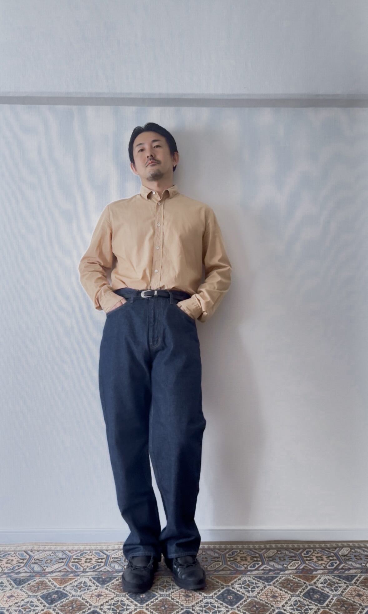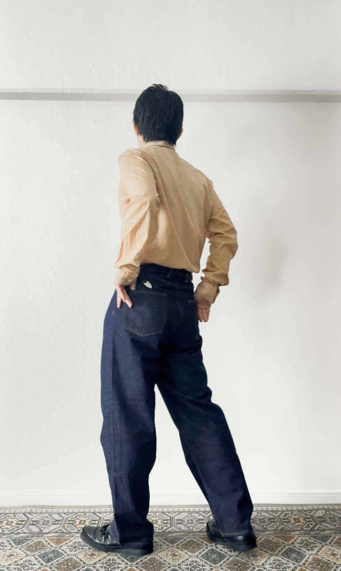 濃い色のこのデニムを穿くと