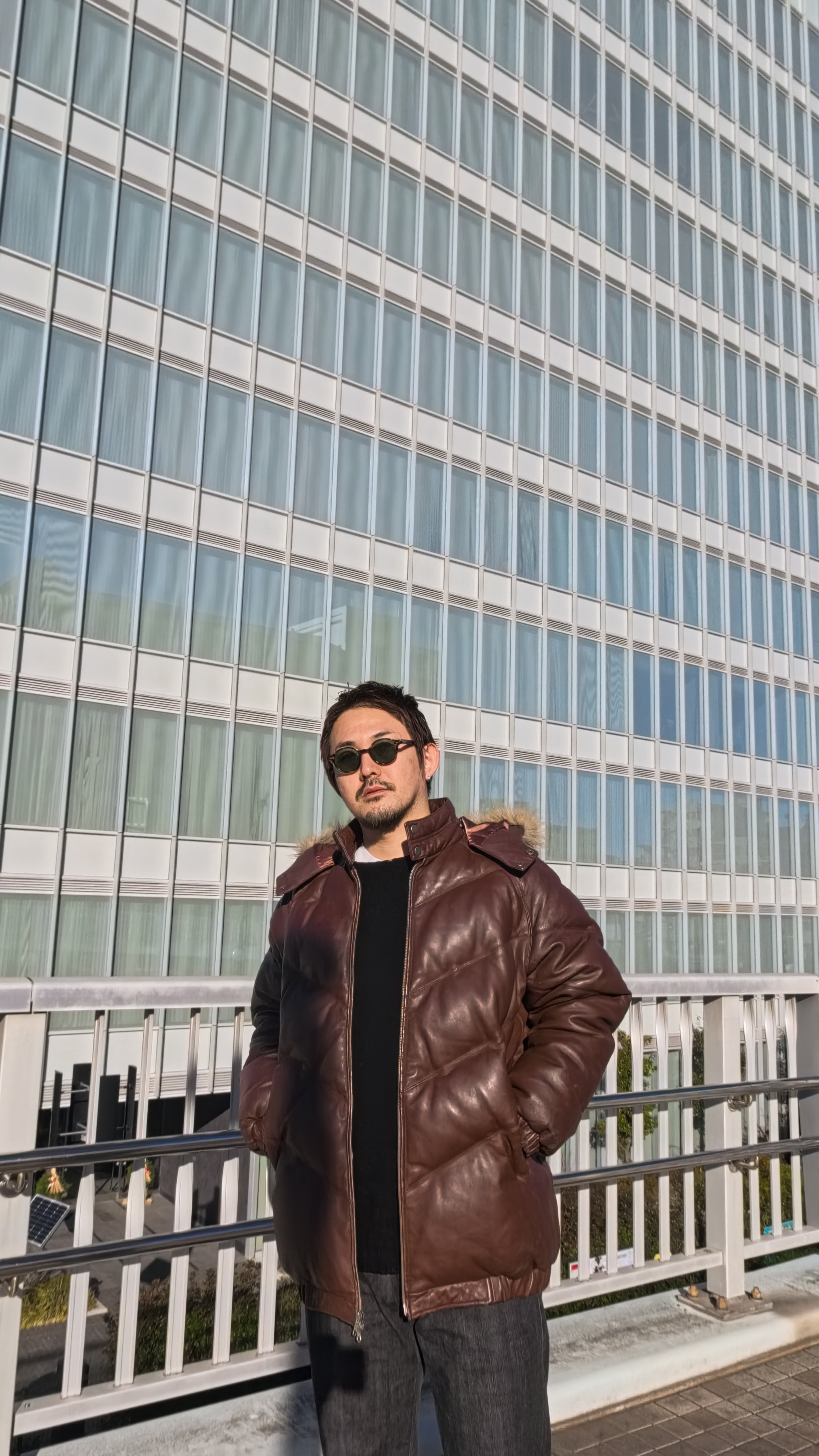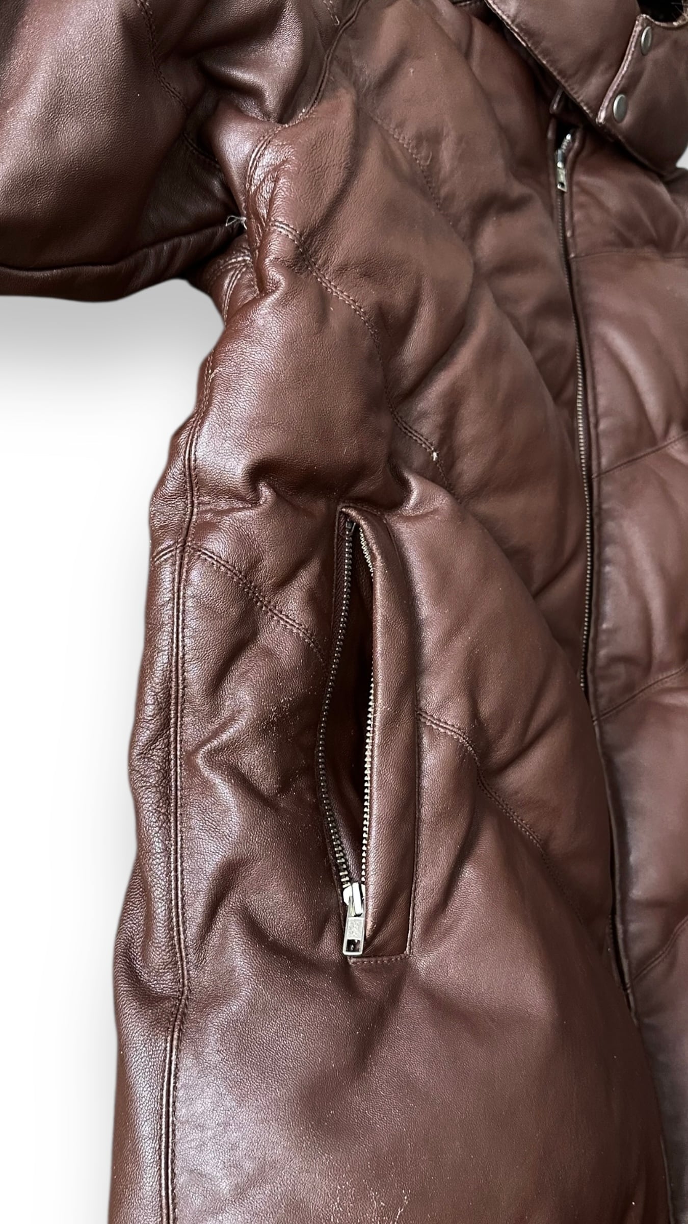 レザーが使用されたダウンジャケット